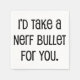 Por el amante del sarcasmo en todos nosotros. Echa un vistazo a este ingenioso diseño de "Yo te llevaría una bala de Nerf" sobre prendas de vestir y regalos.