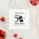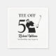 Tee Off into his fifties. With its modern vintage design, this napkin is the perfect way to celebrate a fifties persons passion for golf. The off-white background and striking graphic of a golfer in swing position as party of "50" add a touch of elegance, while the birthday person’s name shines in a beautiful script font. Party details are laid out clearly in serif font. Tailored for both family parties and corporate events, this napkin offers a unique and classy touch. Order now to make his 50th birthday party truly special!