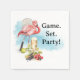 Bring a fun and tropical touch to your celebration with these tennis-themed napkins featuring a stylish pink flamingo holding a racket and ball. Designed in a bright, modern watercolor style, this playful scene blends sporty tennis energy with a sunny Florida-inspired vibe.