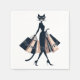 Un gato antropomórfico de moda lleva varias bolsas de compras, con la frase "Terapia minorista" escrita en una de las bolsas. El felino está vestido con elegancia y lleva gafas de sol, exuberando un aire de sofisticación.