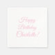 Toallas de papel de fiesta de texto con nombre de guion rosado feliz personalizado de cumpleaños.
