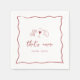 Este hermoso diseño de despedida de soltera inspirado en Italia presenta letras cursivas estilo manuscritas acentuadas con un borde de cinta ondulada en rojo tomate. Ilustraciones dibujadas a mano de pasta de corbata de moño, vino y un limón siciliano completan el diseño para un aspecto veraniego de la Costa Amalfi. Estas elegantes servilletas de despedida de soltera mediterráneas presentan "that's amore" en letra manuscrita con los nombres de la pareja debajo.