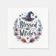 Estas llamativas toallas fiestas presentan una divertida acuarela floral con las palabras Blessed Be Witches.