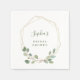Estas servilletas modernas y elegantes presentan una corona de hojas de eucalipto pintadas con acuarela verde y un marco geométrico dorado falso sobre un fondo blanco. Puede cambiar fácilmente el texto, lo que hace que sea perfecto para una fiesta de bebé o una ducha de novia.