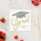 Este diseño cuenta con un fiesta moderno y sencillo graduado, con un gorro de graduación de oro de mortero, para estudiantes de secundaria o universitarios, con clase de nombres personalizados personalizados, un tipo de letra de escritura moderna y elegante de caligrafía, una servilleta de cóctel de fiesta de grado, suministros para fiestas de grado, un sencillo fiesta de confeti de oro minimalista, un diseño moderno y simplista, una servillanta de postre de postre de postre de graduación para la graduación de postre para la graduación