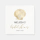 Esta elegante servilleta de ducha de novia cuenta con un ilustracion vintage de una concha de vieiras en un falso Relieve metalizado de oro, encima de las palabras "ducha de novia" en un elegante guión de escritura a mano de colores dorados. Personalizar el resto del texto con el nombre de la futura novia y la fecha de la ducha en letra negra sans serif.
