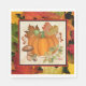 ¡Esta es una servilleta única de papel de acción de gracias "One of a Kind"! Se trata de una bella calabaza Naranja rodeada de hojas caídas en tonos Naranja claro, Naranja oscuro, verde con bayas Naranjas y champiñones marrones. Este es un Diseño de Arte Original del artista Kerry Miller.