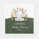 Selva de color agua dulce safari diseño de ducha de bebé con un Elefante con hojas de selva sobre un fondo verde oscuro. Perfecto para chicas con ducha de bebé, duchas de bebé para niños o ducha de bebé neutra de género. Visite nuestra tienda para ver este diseño con animales individuales