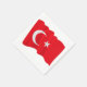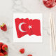 Este diseño es de la bandera turca. La bandera es una gran sombra de rojo y está ondulada como si estuviera soplando en el viento. Este diseño de bandera turca se ve genial en estas servilletas de papel