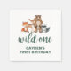 ¡Salvaje! Acuarela Cumpleaños de los Animales de Woodland con oso, zorro, ciervo, mapache y árboles.