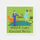 Estas servilletas de papel de la pareja moderna de mediados del siglo Personalizable parecen una escena de una comedia romántica. El estilo de los años 60 presenta un diseño de arte minimalista y cuenta con una atractiva pareja de personalizados que disfrutan de una velada romántica en casa. La sofisticada sala cuenta con una pared de piedra verde con una chimenea que arde. El mobiliario de la habitación incluye un naranja, una tumbona a juego con el reposapiés, un reloj de pared rojo, de starburst, una lámpara amarilla, de sputnik y una mesa naranja, en la que se encuentra un reproductor de discos verde portátil. En el suelo, al lado de la mesa final, se puede ver un disco de vinilo saliendo de la portada de un álbum kitsch. En el centro del parqué verde, hay una gran alfombra rectangular verde azulada. En medio de la escena, tenemos una pareja muy sofisticada. Hay un hombre cortés con un traje azul real, una camisa blanca y una corbata azul. El hombre alto, oscuro y guapo está mirando a su adorable compañero. La elegante mujer de cabello cuervo lleva un vestido de aqua flouncy. Cada una de ellas sostiene un cristal de martini de cristal con una oliva flotante. Salud! ¡Aquí está la velada perfecta en casa! Personaliza para tu ocasión especial.