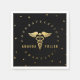 Las servilletas personalizadas de la fiesta de graduación con "¡Felicitaciones Graduado!" y el nombre del graduado enmarcando un caduceus, símbolo de la medicina. Perfecto para decoraciones de la escuela de medicina y de la escuela de enfermería. El confetti dorado aporta un toque festivo y el color negro y dorado es muy sofisticado.