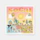 Una escena luminosa y colorida ofrece una vista espectacular del sur de California - personajes extravagantes de la playa y el desierto de SoCal que exhiben Los Ángeles, el condado de Naranja, San Diego, Santa Barbara, Riverside, Palm Springs, El Centro, el mar de Salton, los parques de los árboles Anza Borrego y Joshua Tree, así como las ciudades fronterizas de Tijuana, Tecate y Mexicali. Esta encantadora escena lo tiene todo: un surfista cuelga diez veces mientras una ballena asesina salta del agua, animales del zoo saludan a los turistas, amantes del vino hacen un brindis cuando un excursionista es notado por un OVNI y mucho más...