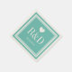 Toallas de papel monograma de color verde azulado/turquesa y crudo para boda. Elegante diseño de fiesta de boda con nombre de letras iniciales de novia y novio. Elegante frontera de boletos con un lindo corazón y fecha de matrimonio. Tema romántico del amor.