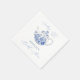 Elegantes servilletas para despedida de soltera con temática "algo azul antes de hacerlo" con tetera vintage y patrón toile de jouy