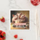 Las servilletas de cumpleaños con un pastel de cumpleaños de tres cerditos con "Feliz cumpleaños", letra negrita de todos los mayúsculas. Personalízalo añadiendo tu(s) nombre(s).