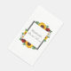 El diseño presenta elegantes girasoles, rosas y margaritas con una paleta de colores otoñales de amarillo dorado, rojo y blanco. El diseño también cuenta con un marco gris carbón. Puede cambiar el color de fondo en la parte delantera y trasera al color de su elección o dejar ambos en blanco.