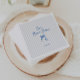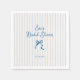 Servilletas para fiesta de novia caprichosas y caprichosas con un hermoso lazo dibujado a mano en un estilo divertido y juguetón con un fondo suave de rayas verticales azules. La fuente manuscrita casual captura perfectamente la emoción y la alegría de la ocasión.