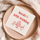 Como ves, esta servilleta de cumpleaños única y elegante tiene una plantilla bien diseñada. Con tarta roja dibujada a mano, vasos de champán y botella con un nombre escrito a mano. Todo sobre fondo crema. Lo que puede personalizar fácilmente al pulsar el botón de personalización.