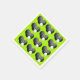 En un patrón repetido en verde limón aparecen tres tazones de césped con un gato