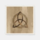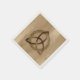 Las servilletas de papel con un simple triquetra celta de color entrelazado con un círculo formando un símbolo trinitario contra un fondo de madera, representando la unidad espiritual con lo divino.