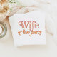 Esta servilleta de 'esposa de la fiesta' presenta una fuente con tema retro de los 70 con una combinación de colores rosa y naranja. Es perfecta para una ducha de novia o una fiesta de despedida de soltera. 💜 ¡LOS COLORES SON EDITABLES! Haga clic en personalizar para ajustar los colores.