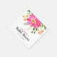 Servilletas brillantes, coloridas y modernas para despedida de soltera con un gran ramo de flores de acuarela en rosa tropical, naranja y verde. El nombre de la novia está en rosa fucsia y "despedida de soltera" está en fuente negra de letra de pincel moderno. También disponibles artículos a juego