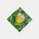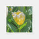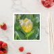 Una hermosa fotografía de cerca de un tulipán amarillo y blanco impreso en las servilletas.