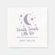 Dulce servilleta de papel para la ducha de bebé para su fiesta temática estrella. Hay una forma de luna y estrellas en Relieve metalizado de imitación lavanda. El texto dice "Twinkle Twinkle Little Star qué milagro eres!" Añada el apellido del bebé. Los textos son fácilmente personalizables en línea.