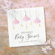 Servilletas para baby shower de Twinkle twinkle little star niña rosa con nubes rosadas lindas y estrellas doradas en cuerdas, sobre un fondo blanco. Personalice con los detalles de su evento especial en texto negro elegante. Diseñado por Thisisnotme©