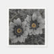 A pair of delicate daisies take centre stage in this striking selective‑colour photograph. The petals and surrounding foliage are rendered in smooth grayscale, creating a calm, monochrome backdrop. At the heart of each bloom, vivid yellow‑orange centres burst with warmth and detail, forming a dramatic contrast that immediately draws the eye. Fine water droplets rest on the petals and leaves, adding texture and a sense of freshness. The combination of soft tones and vibrant colour accents gives the artwork a modern, elegant feel that suits home décor, nature lovers, and contemporary art collections.