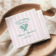 Esta colección preppy presenta una ilustración verde retro inspirada en raquetas de tenis sobre un fondo a rayas rosa suave.