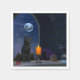 Un lindo gato negro se sienta en una mesa mirando una vela encendida. También sobre la mesa hay un libro, un goblet, una botella, un pecho, un gorra y una bola de cristal con una cuerda sentada encima. Una luna llena brilla en la ventana de la escena.