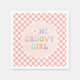 ¡Un chica groovy! Impreso retro de damero con servilletas de fiesta de cumpleaños de Daisies en rosa.