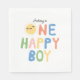 Un hermoso diseño de pañuelos de papel para el sol dibujado a mano. Una servilleta de papel de primera cumpleaños con el tema de un lindo "Un niño feliz". Un hermoso tema de la servilleta de papel solárium de verano que se puede personalizar a tus detalles.