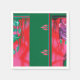El diseño parece ser una obra de arte digital o estilizada dividida en dos paneles por una línea verde vertical. Aquí hay una descripción detallada: ・ Panel izquierdo: o Cuenta con un collar ornamentado colgando en el aire sobre una roca morada. o La roca está rodeada de follaje verde y rojo. ・ Panel derecho: o Este lado es una versión reflejada y ligeramente alterada de la izquierda. o El collar está ausente. o Hay algunas variaciones en la ubicación del follaje. La composición simétrica y los colores vibrantes contrastantes crean un efecto visualmente llamativo.