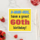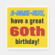 Este llamativo y audaz diseño de pañales de papel con temática de cumpleaños incluye un mensaje como "A-Name-Here, have a Great 60th cumpleaños!", donde el nombre y el número de cumpleaños pueden ser personalizados. Las servilletas de papel como estas podrían ser usadas en un fiesta que se celebra el cumpleaños de alguien.