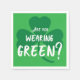 Prepárate para un fiesta del Día de San Patricio con servilletas de papel con las palabras "¿Estás usando verde?" sobre un shamrock verde. Para ver el diseño ¿Estás usando verde? Shamrock en otros artículos, haz clic en el enlace "Artes Rocklawn" debajo. Imagen creada digitalmente. Copyright ©2018 Claire E. Skinner. Todos Los Derechos Reservados.