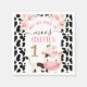 Vaca floral con papel de cumpleaños impreso para vacas Napkin Cute cute con la servilleta de papel de cumpleaños y vaca manchada de negro, arreglos florales rosados y fondo de patrón de impresión de vacas. Esta servilleta de cumpleaños para vacas es ideal para una fiesta de cumpleaños con temática de vaca.