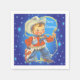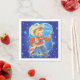Vintage o retro pequeño vaquero con cuerda y Feliz Navidad dentro de la cuerda en un fondo azul impreso en las servilletas de fiesta de vacaciones. Placas de papel coincidentes disponibles