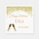 Las servilletas ideales para la celebración del cumpleaños. Borde purpurina dorado elegante, con copas de champán. Simplemente agregue el nombre de la persona de cumpleaños, y la fecha de nacimiento.
