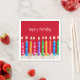Fila de velas encendidas de cumpleaños en la congregación de tortas con rociadas en el fondo rojo. Se puede cambiar el color de fondo.