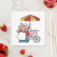 Un vendedor de perritos calientes con su carrito de perritos calientes. Este diseño parece realmente efectivo en estas servilletas de papel