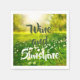 Una divertida foto veraniega del sol con las palabras "Vino y sol" en la parte delantera. Un encantador accesorio fiesta para cualquier temporada.