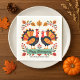 ¡Feliz Día de Acción de Gracias! El diseño de esta servilleta se compone de pavos gemelos, con colas que se abren como una puesta de sol vibrante, que se encuentran bajo un dosel de hojas y bayas otoñales. Un cartel central con un elegante guión dice "Feliz Día de Acción de Gracias", con el nombre de su familia personalizado debajo. Estas servilletas son el toque final perfecto para una fiesta.