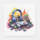 servilletas de papel de cumpleaños. Rojo, azul, amarillo y verde. Ai ilustracion acuarela de auriculares, controlador de videojuegos y otros accesorios para juegos.