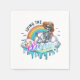 Una llamativa servilleta de mesa con un esqueleto sobre nubes esponjosas con un fondo de arcoiris colorido y letras atrevidas de "Living the Dream". Un regalo gracioso e irónico para los que aman el humor negro, el arte surrealista y el sarcasmo juguetón. Ideal para soñadores, amantes del humor y cualquiera que disfrute de un giro desenfadado en el viaje de la vida.