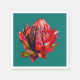 Obra de arte original de una pintura acuarela de una flor de waratah roja botánica australiana modernista. Arte floral con tema de flora australiana. Un recuerdo australiano.