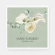 Arreglo floral neutro y delicado de color de agua de callas y lirios sobre fondo verde claro