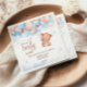 Charming baby shower napkins with a sweet teddy bear floating beneath a canopy of blue and blush balloons. The soft watercolor clouds, star accents, and playful “We Can Berly Wait” wording create a stylish look for a baby boy celebration. Perfect for a teddy bear baby shower theme, pastel party table decor, or a coordinated bear and balloons event.